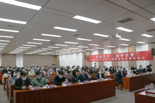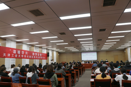 2021年4月23日上午,天津市天津工业大学教育发展基金会和经济与管理学院联合举办的“温暖华兴 助梦经管”华兴励志奖学金颁奖仪式在会议中心第七会议室举行。优秀校友企业东莞空研冷却塔有限公司副总经理刁力先生、财务部长刘毅女士、企业员工代表马越先生出席活动,学校基金会理事长、校友工作办公室主任徐先林,学生工作部部长、学生处处长王丽清,经济与管理学院党委书记王军杰,党委副书记、常务副院长朱春红,党委副书记刘建准、副院长李月龙、纪委书记孙涛,校友工作办公室副主任魏展,学校基金会秘书长范晓芸及获得华兴励志奖学金的在校生、经济与管理学院师生代表100余人参加活动。颁奖仪式由魏展副主任主持。