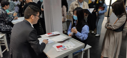为切实加强毕业生与用人单位之间的交流,多个单位在前期都实现了线上报名、发布招聘信息和资质审核,极大地提高了工作效率。同学们可以通过扫码查阅所有招聘岗位及用人信息、在线投递简历。用人单位在收到简历后,可在招聘会现场与投递简历的学生进行面对面交流,实现了线上线下互动的高效招聘。