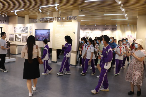 随后,师生们参观了承载着天工故事、传承着天工精神的校史馆。在校史馆讲解员尹梦轲同学的带领下,深入了解了天津工业大学办学历史渊源,从北平肇基、逆境发展到西迁办学、凤栖津门再到固本创新、多科发展,天津工业大学实现了从单科学院向多科性综合大学的跨越,向着建设具有世界一流学科的高水平大学砥砺前行,并在祖国高等教育的发展进程中谱写了一曲科教兴国的华章。通过讲解员声情并茂的讲解,师生们感受到了一代又一代天工人不断追求、思索、实践的“奋斗之美”。