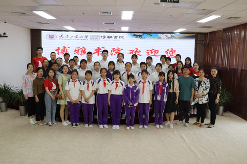 首先,在图书馆李超老师的带领下,师生共同参观了天津工业大学图书馆。同学们兴致勃勃地参观了语言图书借阅区、文学图书借阅区等六个开架图书借阅区,不时翻看自己感兴趣的书籍,在其中体会丰富的文化资源和浓厚的学术氛围所带来的“智慧之美”。