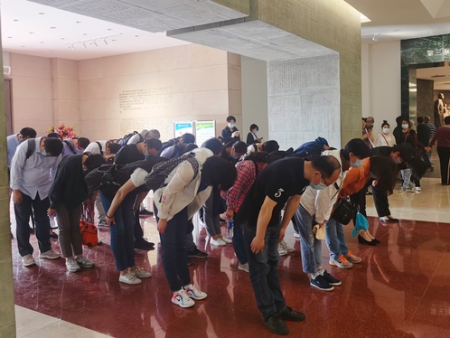 老师们驱车近三个小时来到乐亭县,怀着崇敬之情,走进李大钊纪念馆。敬献的花篮摆放在李大钊塑像前,大家向李大钊塑像三鞠躬,深情表达对革命先辈的深切缅怀和追思敬仰。