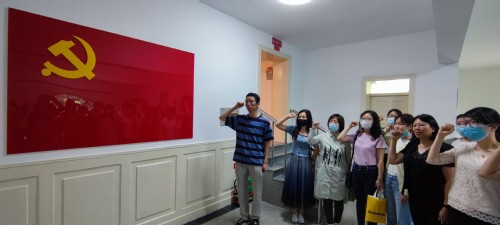随后,两个教研室党支部二十余名党员一同前往位于和平区山西路98号的中共天津历史纪念馆,参观《奋斗的历程 辉煌的成就——庆祝中国共产党成立100周年暨中共天津地方党组织发展历程展》。在瞻仰老一辈无产阶级革命家们在天津从事革命活动以及取得的丰功伟绩后,党员们纷纷表示,一定要牢守初心、永葆本色,从党的历史中汲取前行的智慧和力量,为建设美丽天津作出应有的贡献,为实现中华民族伟大复兴的宏伟目标砥砺前行、接续奋斗。党员代表郑洪民带领全体党员面向党旗,重温入党誓词。