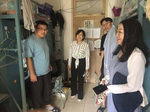 在西苑七号楼宿舍检查过程中,刘培副书记亲切地询问了学院毕业生的就业去向、未来规划、离校手续办理情况以及离校前存在的困难等事宜,并进一步对毕业生的思想状况进行了解。在此次走访检查中,刘培副书记对不同就业去向的毕业生给出了有针对性的建议:对于已就业的学生,嘱咐他们及时转换角色、脚踏实地、积极进取;对于考研升学的学生,激励他们在科研道路上沉下心来、耐住寂寞、奋力拼搏;对于择业中的学生,鼓励他们不要气馁、找准定位、主动出击,及时关注学院推送的就业信息,并祝他们早日找到满意的工作。