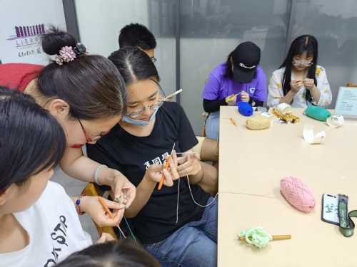 在书院兼职教师谷煜老师和何连妃老师的指导下,师生们用钩针钩编或用彩线缠绕,制作出一个个精美的“线粽”。在庆祝中国传统节日的同时,了解我校的纺织特色传承,提高动手能力和审美情趣。