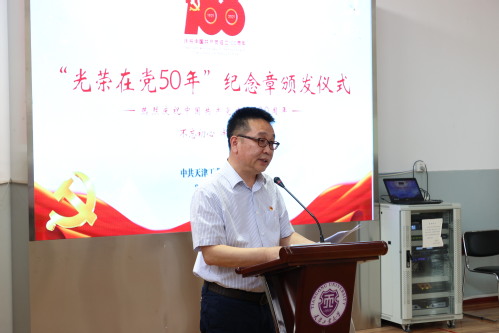 2021年6月18日上午,天津工业大学“光荣在党50年”纪念章颁发仪式在河东校区离退休活动中心举行。校党委书记俞绍平、校党委副书记陈泮成、常务副校长陈莉出席,41名获得“光荣在党50年”纪念章的老党员代表参加颁发仪式。仪式由校党委常委、组织部部长刘宏韬主持。
