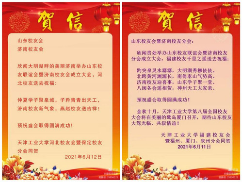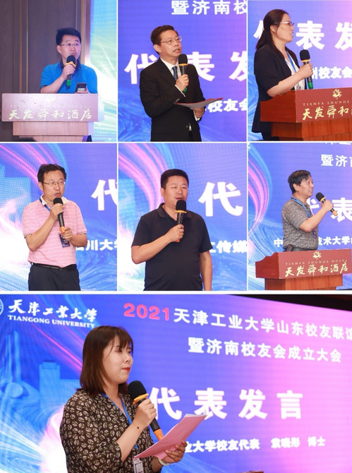 江苏校友会副会长沈春植、天津校友会秘书长姬洪波、德州校友会会长崔洁等其他省市校友会代表对本次大会的召开表示祝贺,希望未来加强校友会之间的联系合作。中国科学技术大学济南校友会会长黄大翔、四川大学济南校友会秘书长亓庆国、浙江传媒学院山东校友会会长何林对天津工业大学济南校友会的成立表示了祝贺。随后,2021届博士毕业生袁晓彤代表年轻校友作了发言。