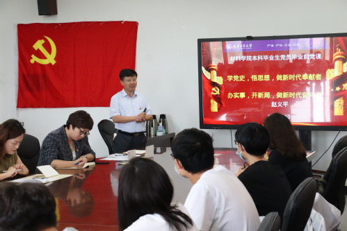 首先,赵义平书记以“学党史、悟思想,做新时代奉献者;办实事、开新局,做新时代奋斗者”为主题讲授了毕业生党员最后一课。他将中国共产党百年征程凝练为“三种精神”:即开天辟地、敢为人先的首创精神;坚定理想、百折不挠的奋斗精神;立党为公、忠诚为民的奉献精神。赵义平书记对全体毕业生党员提出要求,要时刻以党员的高标准严格要求自己,自觉做到“五带头”,即带头学习提高、带头争创佳绩、带头服务群众、带头遵纪守法、带头弘扬正气,并祝福毕业生们在以后的人生路上一帆风顺、大展宏图。