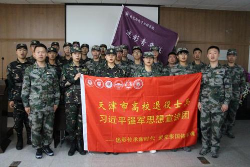 会议伊始,张谷副书记宣读天津工业大学《“退役大学生成长计划”实施方案》和成立迷彩青年社的决定。据介绍,迷彩青年社是由退伍大学生、新生军训学生教官、国旗护卫队成员以及热爱军事的同学组成的军事社团,在学校人民武装部和学院党委的支持下成立,是学院开展国防教育、预储征兵先进队伍的有效载体。