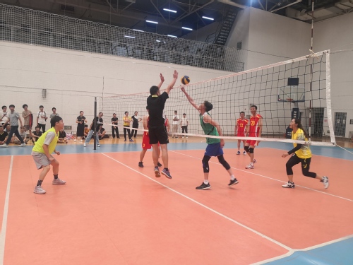 赛场内,队员们精神振奋,敢打敢拼,不断起跳、抢位、扣杀、拦网,一个个细节体现了队伍的凝聚力和战斗力,展示了高超的球技和顽强的斗志。赛场外,啦啦队队员们呐喊助威,振奋团队士气。比赛精彩纷呈,高潮迭起,气氛紧张而热烈。各参赛队团结拼搏,充分展现了教职工团结奋进、拼搏向上的精神风貌。