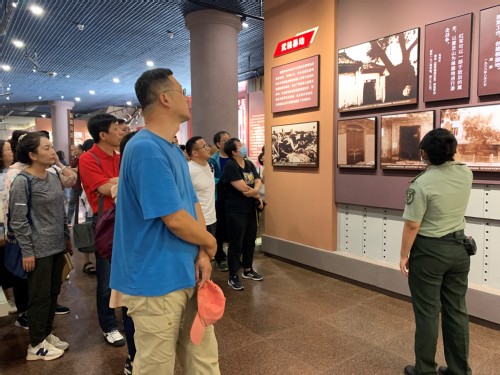 全体人员首先参观了盘山革命纪念馆。纪念馆陈列采用了以地方革命史为主线,以抗日英烈事迹为重点,人史结合的陈列体例,充分运用馆内的革命文物、历史照片以及景观、雕塑、影像、油画等辅助陈列手段,展现了由包森、田野、李子光、王少奇和莲花峰七勇士等众多盘山革命先烈组成的英雄群体,热情讴歌了盘山根据地抗日军民忠于理想、热爱祖国的崇高精神和前赴后继、百折不挠的革命斗志。看着照片上那一张张稚气的脸庞,在国难当头时,革命先烈们英勇就义,献出了年轻又宝贵的生命,让现场人员深受感动和教育。