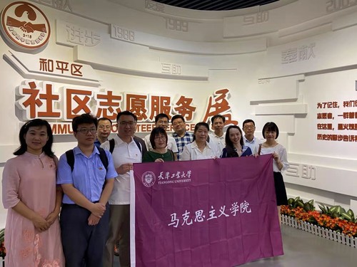 为深入学习习近平总书记“七一”重要讲话精神,将党史学习教育成果转化为我为群众办实事、解难题的具体行动,2021年7月5日,马克思主义学院概论课党支部全体党员深入全国首个社区志愿者组织发起地——和平区新兴街朝阳里社区调研学习并开展志愿服务活动。