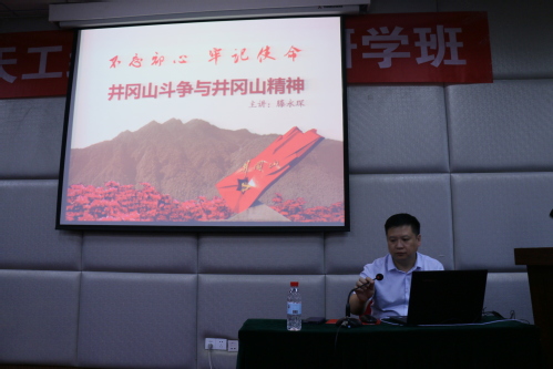 天工纺织井冈山研学班全体党员抵达井冈山当天,便投入到专题学习中。团中央井冈山教育基地办公室主任滕永琛博士以《井冈山斗争和井冈山精神》为题给党员们上了一堂生动的党史学习教育课,使党员们全方位了解井冈山斗争的历史脉络、作用及井冈山精神的内涵,认识井冈山精神是中国共产党在开辟中国革命新道路过程中形成的伟大革命精神。