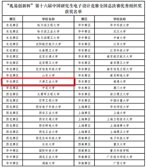 2021年8月15日,由教育部学位管理与研究生教育司、教育部学位与研究生教育发展中心指导,中国电子学会联合中国学位与研究生教育学会和中国科协青少年科技中心共同主办,浙江省绍兴市人民政府承办的“兆易创新杯”第十六届中国研究生电子设计竞赛落下帷幕,我校研究生共获得技术类竞赛及商业计划书专项赛全国二等奖4项、三等奖4项;华北赛区初赛一等奖27项、二等奖52项、三等奖36项的佳绩,获奖总数位于全国高校前列。同时,天津工业大学连续6年获得全国优秀组织奖,我校5名教师获得初赛优秀指导教师荣誉称号。