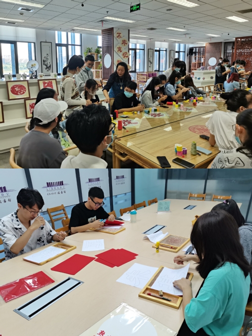 2021年9月7日上午,法学院本科生第一党支部和第二党支部组织46名学生党员和入党积极分子来到博雅书院行园,开展“感念师恩”手工艺品制作活动。博雅书院常务副院长尚绪芝、副院长倪娟,教师锡晓静、张云鹏全程指导。尚绪芝老师从工艺传统、材料选用、制作方法、美学价值等方面对此次的工艺创作进行介绍。大家用手中的针线认真编织出一个个别具特色的葫芦挂饰,丝缕之间,诉说着学子们浓浓的尊师情意。剪纸小组的同学通过精心裁剪,最终完成了端庄大气的隶体“尊师重教 奠基未来”的主题剪纸作品。