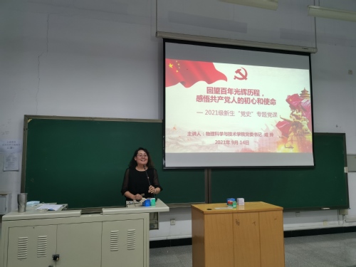 9月14日晚,学院党委书记成玲在第一公共教学楼D103给新生讲党史专题党课,带领全体新生回顾100年前的中国,深情诉说中国共产党成立百年来发生的巨大变化,使同学们坚定跟党走的信念。伴随成玲书记讲述中国近代以来的发展历程,同学们仿佛回到了那个艰苦奋斗的年代,见证了中国共产党为中华民族做出的伟大贡献。成玲书记鼓励广大青年学生积极申请入党,肩负起当代青年人的使命,为祖国的发展贡献自己的智慧和力量。随后,负责学生党员发展工作的辅导员王亚琼详细讲解了党员发展的流程以及撰写入党申请书的注意事项。学生党员代表孙博涵结合自身经历,向学弟学妹们分享了一名学生党员的成长之路。