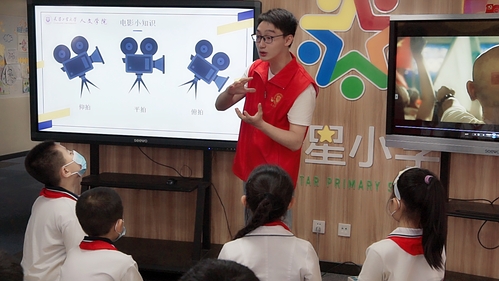 志愿者们准备充分、全身心投入,小学生们聚精会神、积极配合,现场电影知识讲解与实践操作融合,师生互动与激烈辩论交互。通过此次活动,孩子们明白了影像不仅可以记录历史,完成艺术创造,更明白了要用脚步丈量祖国大地、用心感受时代变化,见证中国共产党带领全国各族人民在新时代不断创造伟大奇迹的光辉历程。