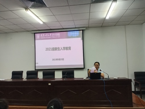 9月23日,艺术学院党委书记刘伟为全体新生讲授题为《坚定理想信念 勇担时代使命》的“党史”专题党课,鼓励同学们积极向党组织靠拢,志存高远,在为祖国、为人民的奋斗中抒写青春精彩华章。
