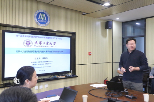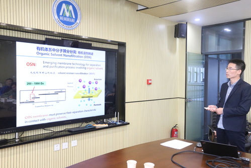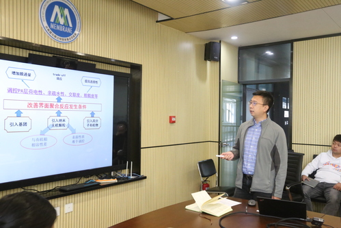随后,论坛进入报告环节,由武春瑞教授、王亮教授主持。马小华研究员、龚耿浩研究员、陈熙教授、赵军强副教授、刘海亮副教授、李少路副研究员、李娜娜教授、赵斌副教授、马聪副教授、莫颖慧副研究员等分别做了题为《碳氟键对本征微孔聚合物结构和气体分离性能影响》、《相转化/烧结制备超薄多孔陶瓷片用于油水乳液的高效分离》、《双层催化复合膜分离及催化》、《抗污染纳滤膜在生物医药分离纯化中的应用》、《功能纤维膜材料结构设计与制备》、《用于分子筛分分离的薄层复合膜》、《超分子识别PVDF/PVA超滤膜制备及在去除芳香类污染物中应用》、《ZIF-8对于聚酰胺纳滤膜的渗透性能强化研究》、《基于PAN纳米纤维支撑层的复合正渗透膜的制备与表征等内容》、《Sb-SnO2/C膜电极降解苯酚的稳定性研究》的学术报告。报告围绕分离膜材料设计、微结构调控方法,以及相关技术在气体分离、油水分离、医药分离纯化等方面的应用探索展开交流,充分展示了我校在分离膜领域的最新研究进展,为在场师生呈现出一场精彩纷呈的学术盛宴。
