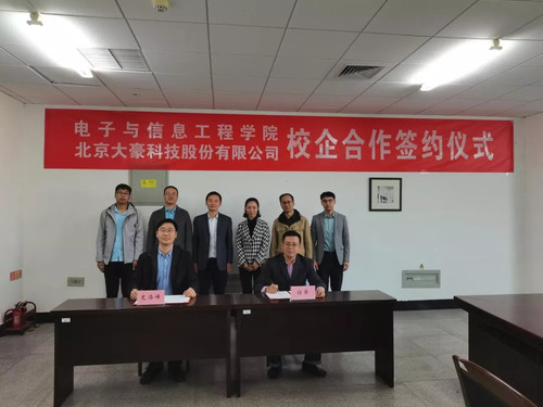2021年10月13日下午,电子与信息工程学院与北京大豪科技股份有限公司签署校企合作人才培养协议,签约仪式在学院楼4B313举行。北京大豪科技股份有限公司市场总监潘磊、人力资源部经理史浩峰、招聘经理董洋洋,学院党委副书记王琛、副院长白华、实验中心主任段晓杰、学生工作办公室主任薛高建以及辅导员佟保远老师参加了此次会议。
