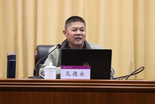 开班仪式结束后,2021年天津市高校思想政治理论宣讲“教授团”成员--天津师范大学马克思主义学院教授、博士生导师孔德永受邀作了《意识形态与国家安全》的主题报告。孔德永教授从意识形态与国家安全的内涵与作用、当前意识形态斗争的主要表现、西方意识形态对中国渗透的主要做法以及当前我国意识形态工作存在的主要问题、如何防范意识形态风险与提升意识形态斗争的本领等五个方面作了一场内容丰富、高屋建瓴、深入浅出的报告。