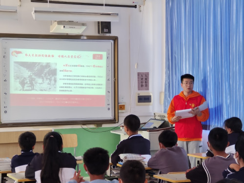 最后,宣讲团一行来到尤古庄镇西塔中学,以“中国精神—共产党员的精神谱系”为主题,以英雄人物事迹和系列真实数据为切入点,让历史“说话”,用史实“发言”,对“长征精神”“抗美援朝精神”“抗震救灾精神”“脱贫攻坚精神”进行了深入细致的讲解。同学们听得聚精会神,随着宣讲团的讲解时而频频点头、时而举手提问,一阵阵热烈的掌声也将此次宣讲会推向高潮。