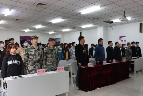 为落实立德树人根本任务,激发广大学生参军报国的热情,营造良好的大学生参军入伍氛围,2021年10月29日上午,环境科学与工程学院在6C103教室召开垚淼兵心社揭牌、授旗仪式暨2022年度春季武装征兵动员大会。校人民武装部部长张志勇、环境科学与工程学院党委副书记曹鸿斌、学院团委书记(学办主任)王玉辰、垚淼兵心社指导老师程一鸣、校赤子兵心学员大队负责人和学生代表参加了本次会议。