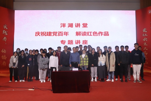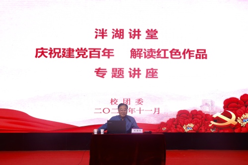 2021年11月4日中午,校团委在艺缘活动中心二楼多功能厅举办“庆祝建党百年,解读红色作品”专题美育讲座。国家一级编剧、词作家朱胜民受邀作了题为《歌词的解读与欣赏》讲座。我校专兼职美育教师和各学院学生代表近百人参加。