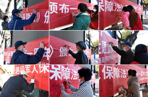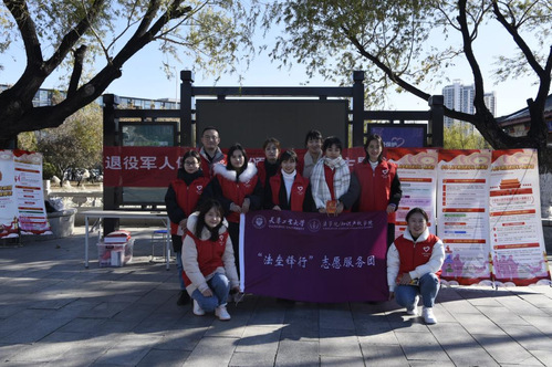 为深入学习宣传贯彻习近平法治思想和习近平总书记关于退役军人工作重要论述,进一步加大《中华人民共和国退役军人保障法》(以下简称《退役军人保障法》)普法宣传力度,推动“我为群众办实事”实践活动的深入开展,2021年11月11日,在《退役军人保障法》颁布一周年之际,法学院“法垒锋行”志愿服务团与天津市退役军人事务局、市关爱退役军人协会在南开区水上公园共同开展了《退役军人保障法》颁布一周年主题宣传活动。
