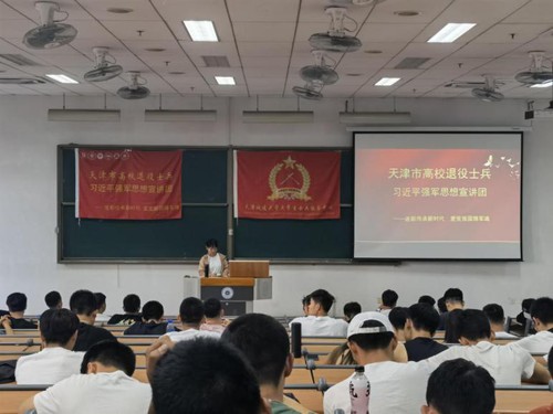 2021年4月,由天津市普通高等学校军事课教学指导委员会指导,天津工业大学人民武装部牵头,联合天津理工大学、天津师范大学、天津外国语大学、天津城建大学优秀退役大学生士兵组建“天津市高校退役大学生士兵习近平强军思想宣讲团”,五所高校退役大学生士兵担任宣讲团骨干,在对习近平强军思想、国防知识、党史军史、征兵政策等充分学习了解的情况下,走进天津博瀚小学、天津市津南区弘毅训练基地、天津市河东区七纬路街道办、南开区民兵预备役训练基地等地,深入到学生、青年、群众群体中去,讲述国防教育知识、述说热血军人故事。