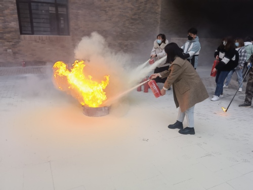 2021年11月17日下午,学院联合学校保卫处,开展了消防疏散演练系列活动。保卫处副处长金学东,学院党委副书记曾华英、副院长王文一、学生工作办公室全体辅导员及2021级研究生新生共计200余人参加此次活动。本次消防安全教育包括消防应急疏散演练、消防安全教育、消防设备学习使用三个环节。下午4时许,消防警报正式拉响,由烟雾弹散发的烟雾模拟出火灾真实场景,全体新生们在指导教师的指引下迅速离开学院楼宇,按照既定的应急疏散方案、路线撤离至指定地点。在疏散演练结束后,校保卫处蒋晓阳老师为新生们讲解了使用灭火器的关键步骤,同学们在教师的指导下练习使用灭火器,学生们在练习后都掌握了灭火器的使用方法。通过演练,进一步增强了学生的消防意识,提升了学生们的消防实操技能。