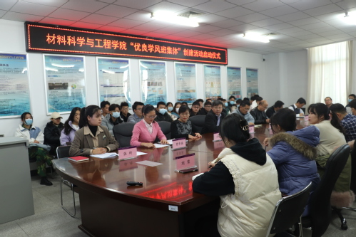 为全面贯彻党的教育方针,落实立德树人根本任务,创建良好的育人环境,进一步加强学风建设,以优良学风促进优良院风的形成,材料科学与工程学院于2021年11月23日在6A502会议室举办了“优良学风班集体”创建活动启动仪式。学生处副处长方桂珍、材料科学与工程学院党委书记赵义平、党委副书记曾华英、副院长王文一、副院长刘晓辉、团委书记孙立东、教学办主任齐琳,以及辅导员、班导师及学生代表共计60余人参加会议。