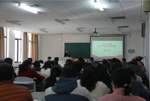 为深入学习宣传贯彻党的十九届六中全会精神,深刻领会全会的重大意义、丰富内涵和精神实质。2021年11月25日下午,机械工程学院党委在学院E410教室召开全体教职工大会,会上学院党委书记覃兰静领学党的十九届六中全会精神。