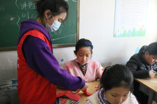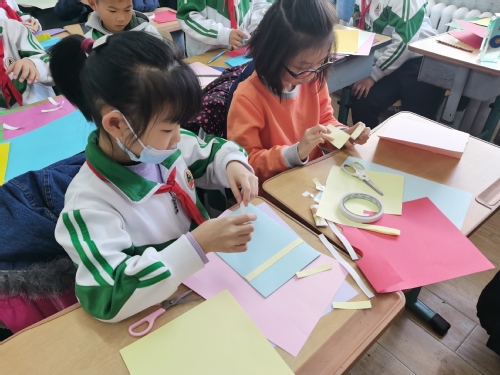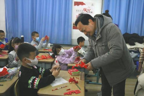 会后,刘雍常务副院长实地走访了南开区实验学校小学部,详细了解了纺织科学与工程学院志愿者课后托管服务情况。本次课后托管,志愿者分别为学生讲述《中国传统节日文化》、《感恩教育》、《红船精神在我心》、《爱国精神时时记》四门课程,并带领学生体验剪纸、手作立体贺卡、教唱红歌《我们是共产主义接班人》《中国共青团团歌》,寓教于乐、寓乐于教,启迪学生心智、涵养学生心灵。刘雍常务副院长赞扬了志愿者们“奉献、友爱、互助、进步”的志愿服务精神,并提出要加快“匠心课堂”、“红色精神传承课堂”、“唱响红歌”三个品牌建设,融入纺织元素,提升科技含量,不断发挥点线面传动作用,让纺织学科为课后服务的多元化发展赋能。