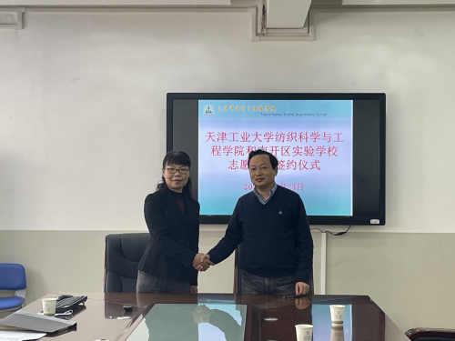2021年11月23日,一场特殊的签约仪式在南开区实验学校中学部三楼会议室举行。南开区实验学校校长李颖、副校长周淑春、小学部部长王凡中,纺织科学与工程学院常务副院长刘雍,辅导员陈文洋、薛朕钰、梅思琦出席签约仪式,仪式由南开区实验学校王凡中部长主持。