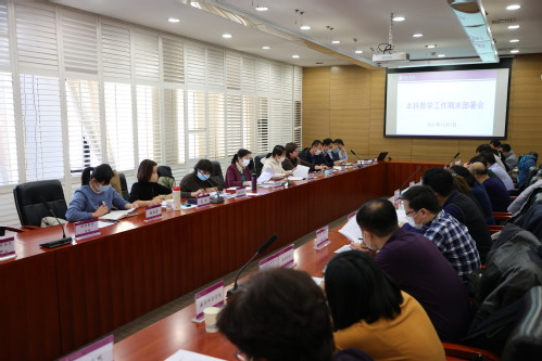 2021年12月1日下午,学校在会议中心第五会议室召开本科教学工作期末部署会议。常务副校长陈莉出席并讲话,各二级学院主管教学工作副院长,教务处、教学质量监控与评估中心全体人员参会。会议由教务处处长王春红主持。