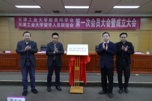 与会领导共同为天津工业大学欧美同学会(留学人员联谊会)揭牌。陈华部长宣读会长、常务副会长、副会长选举结果以及理事、秘书长、副秘书长名单。