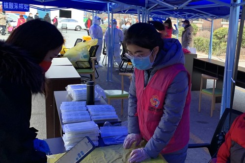 实验员张丹老师于1月11日参加天津市河西区陈塘庄街道四季馨园社区新冠疫情大筛志愿服务,负责给采样管贴标签,协助安排社区居民有序快速检测。辅导员武鹏博老师于1月12日参加和平区卫津路社区二次核酸筛查工作,负责检测现场秩序维持工作,保证排队安全距离确保检测按顺序进行;协助现场工作人员帮助部分外国友人完成核酸检测的登记和采样。乔荣锋老师于1月12日参加河西区梅江香水园社区志愿者活动,到楼门栋通知居民核酸检测;协助居民登记,验码,维持秩序。