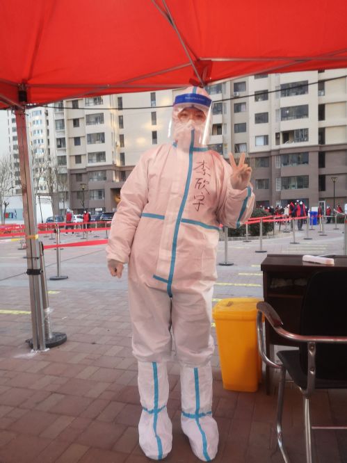 动画1804班学生李欣宇是一名入党积极分子,主动参加津南区双港镇林景家园抗疫工作。在寒冷的室外连续工作七个多小时,主要负责登记核酸检测人员的信息。她说:“在志愿服务工作中,身上很冷,但心很温暖,为社会贡献一己之力的感觉超级棒。”