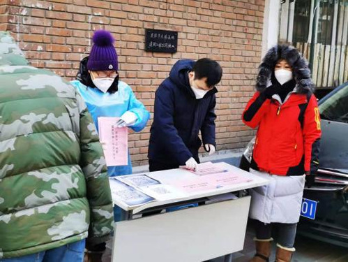 智能医学工程系党支部教师耿磊,下沉到北辰区都旺新城社区参与抗疫工作,负责逐户通知居民核酸检测。凌晨5点,耿磊顶着寒风到达现场,接到指令后逐户上门通知。“核酸检测井然有序,我们志愿者多跑腿,老百姓就能少排队,我感到很有意义。”耿磊老师这样说道。