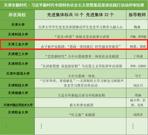 该项荣誉的获得也是人文学院在天津市“新时代·习近平新时代中国特色社会主义思想基层宣讲实践行”活动中新的突破,充分展现了天工学子理想信念坚定、理论功底过硬、积极参与社会实践、主动担当作为的精神面貌。