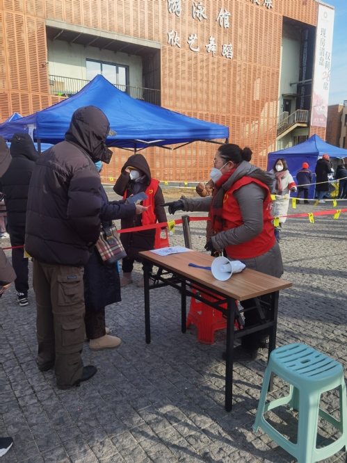 无党派人士、西青区人大代表、纺织科学与工程学院教授封严从1月11日报名下沉社区至今已整整一周的时间,因为所在社区地处重点区域,已经进行了五轮核酸检测。作为现场服务的志愿者,封严老师在凌晨两点的寒夜里、在呼啸的寒风中、在冬日的阳光下一次又一次地重复着维持秩序、敲门、登记录入等工作,虽然手脚冰冷、身体极度疲惫,但看到依然坚守岗位的医护人员,拿着热心居民们送来的暖宝宝、热水瓶,心中倍感温暖和敬意。封严老师说,虽然自己不是土生土长的天津人,但来到天津求学、生活已近30年,天津早已成为她的家,自己的家遇到困难,作为家里的一份子,做些力所能及的事是义不容辞的责任。惟愿病毒尽早远离,津城春回大地、欢喜如常!(审稿:党委统战部 陈华 编辑:党委宣传部 柳婷)