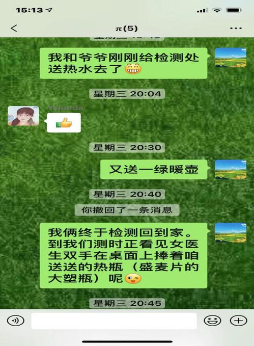 在第二次全员核酸检测时天气特别寒冷,医护人员的手冻得僵硬红肿,理学院退休党支部侯全英老师看在眼里、疼在心里,她和老伴一起在晚上2次将热水瓶送予医护人员,同时在家庭群里号召家人在其它检测点也这样做。侯老师说,看到医生双手在桌上捧着他们送去的热水瓶捂手,心里很是欣慰。