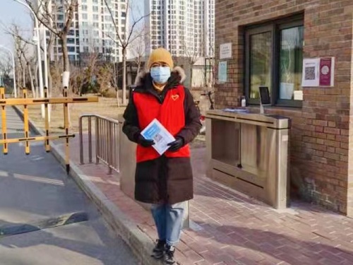 市政协常委、民革西青工委天津工业大学支部主委翟延慧老师得知天津“两会”时间推迟后,便立即投身志愿服务,即使快要退休,仍在社区门口站岗执勤。翟老师说:“我只是做一点力所能及的事。每一位志愿者都在尽己之力,服务人民,用涓滴之水汇聚起战疫的强大力量。”