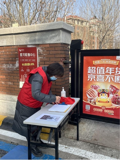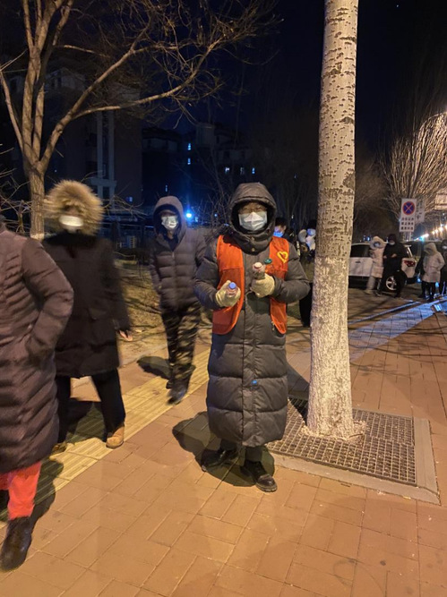 “阿姨,您别着急,我们志愿者可以帮您手动登记,别担心!”一位70多岁的阿姨拿着自己手里的老人机,焦急地询问没法扫码怎么办,肖月老师耐心地为老人解释着,并扶着老人走到登记地点,帮助登记、检测,做完之后护送老人家离开检测地点。“谢谢你啊,年轻人!”这是检测现场中最平凡不过的一件小事,一句简简单单的道谢,让肖月老师干劲十足。居民们送来的小蜜蜂、暖贴、暖手宝不仅暖了肖月老师的手和脚,也暖进了心里。