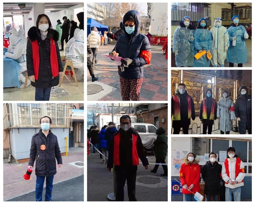 哪里有任务,哪里就有冲锋在前的身影。王秀兰老师在居华里社区协助第四次核酸筛查,维持现场秩序,帮助现场的老幼病残居民顺利进行核酸检测;赵军健老师在核酸检测过程中维持秩序,耐心疏导居民检查;王秋梅老师在万兴街兴泰路社区兴泰南里采集点,负责样本送检工作;王小超老师在天大四季村社区协助宣传组拍照、引导人员分批检测;六点不到,吴永军老师就在林苑西里社区居委会集合,挨家挨户喊居民下楼做核酸;王俊红老师在精武佳苑社区配合工作人员和医护人员维持现场秩序;张毅老师在地华里社区负责核酸筛查核对信息;赵晓芃老师在燕南园校区协助工作人员进行第四次核酸筛查服务;张倩影老师和刘艳老师在第四次大筛中,负责传递样本试剂;陈雅颂老师在津南区关键卡口处负责扫码测温……