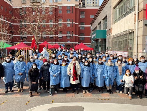 在天津与奥密克戎病毒狭路相逢、正面“硬刚”之际,作为一名党员,李皎老师第一时间参加了报道地西宁道社区的志愿服务活动。在“大筛”现场,她主要负责维护排队秩序和做好居民思想工作,及时化解突发问题和邻里误解。三九寒天工作10个小时,虽然很冷,但当居民送来热水时,亦或居民以信任的眼光向你咨询时,她感觉一切的付出都是值得的。她说道:“作为一名党员,也是一名组工干部,当第二故乡遭受疫情时,必然责无旁贷、义无反顾地投身到防疫志愿服务中,这是对党史学习教育的一次生动检验,也是对初心和使命很好的践行。天津一定赢,中国一定行!”