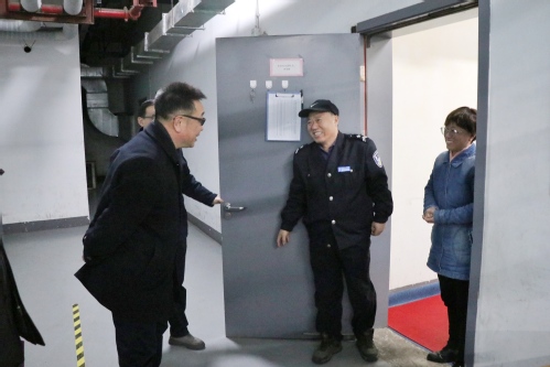 在消防站及学校东门,俞绍平书记查看了疫情防控措施的落实情况,肯定了校园疫情防控及安保服务工作,向工作人员表达了新春祝福。在D区设备站,俞绍平书记详细询问了供暖系统运行和能源保障情况。在兰缘食堂,他叮嘱工作人员要全心做好餐饮服务,祝福大家虎年安康。在学校值班室、行政中心物业,俞书记为春节值班工作人员送上新春祝福,感谢大家付出的辛勤劳动。