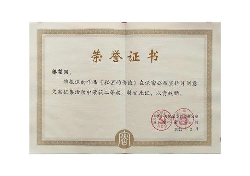 日前,我校报送的保密宣传作品《秘密的价值》,经国家保密局专家评审,在众多参赛作品中脱颖而出,喜获全国保密公益宣传片创意文案征集活动二等奖。