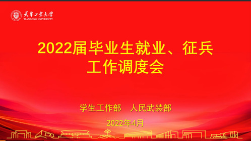 会上,王丽清部长传达了天津市2022届高校毕业生就业工作视频会议精神。人民武装部部长张志勇,党委学生工作部副部长、学生就业指导中心主任楼稚明分别就我校征兵工作和就业工作现状进行汇报,并指导部署下一步工作。电子与信息工程学院党委副书记王琛、艺术学院党委副书记金笛结合本学院实际,作就业工作和征兵工作经验交流发言。