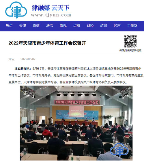 2022年5月7日,津云以《2022年天津市青少年体育工作会议召开》为题对我校进行了报道。现将全文转发如下,以飨读者。